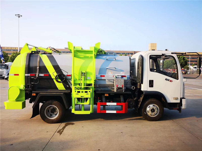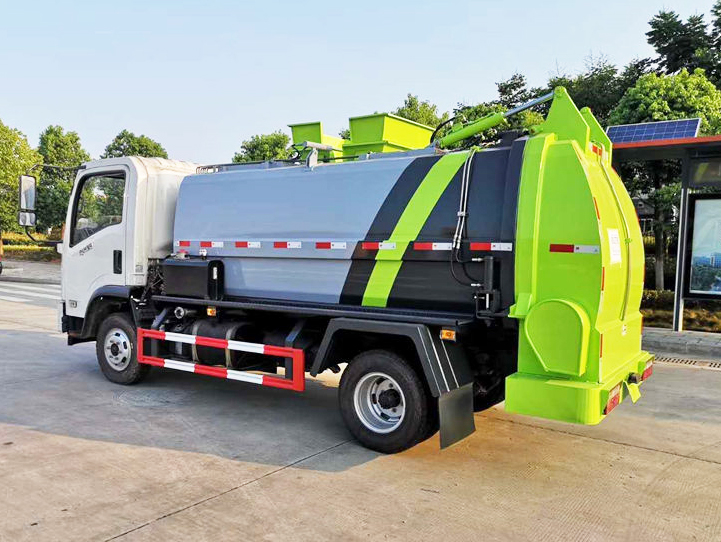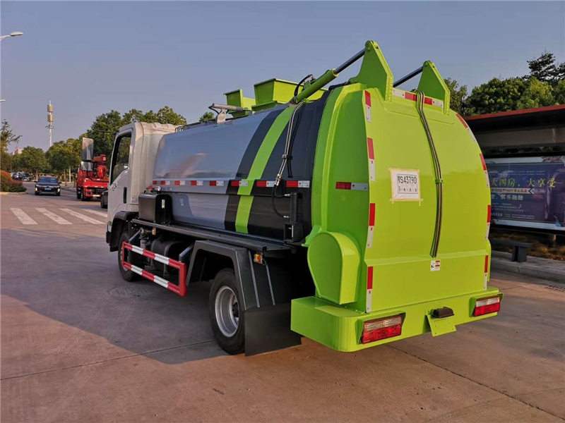 该车辆装有侧装垃圾桶升降装置,封闭式垃圾罐等装置,主要作用于餐厨垃圾收集,转运及卸料作业。整车长/轴距/前悬/后悬对应关系(mm)为:6570/3800/1070/1700;6770/3950/1070/1750,6570/3650/1070/1850,7150/4500/1070/1580,6570/3300/1250/2020, 防护材料:Q235A碳钢,连接方式:左右侧面与副梁采用焊接连接,后防护装置由专用装置代替,离地最小高度为380mm。ABS型号及厂家为:3631010-C2000/东科克诺尔商用车制动系统(十堰)有限公司;3631010C2000/3550D-1010/东风福利企业公司。