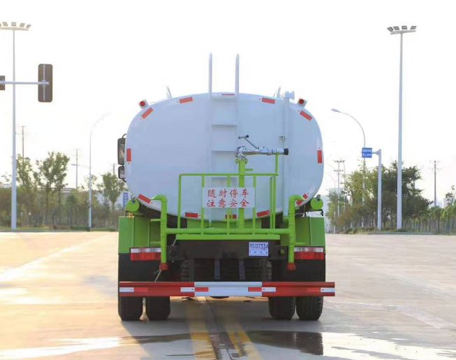 该车主要用于城乡园林绿化洒水,喷药等;主要装置为水罐及泵.随底盘选装驾驶室.选装花洒样式和后部指示灯.罐体有效容积:11.8立方米,运输介质:丙酮水溶液,密度950千克/立方米.整车长和后悬(mm)一一对应:8300/2540;8600/2840;罐体外形尺寸(长×长轴×短轴)(mm) 5000×2360×1490,4800×2380×1540,4600×2340×1590.侧、后防护材料为Q235B,侧、后防护与车架焊接连接.后部防护装置断面尺寸(宽×高)50×120(mm),后部防护离地高度:490mm.ABS系统生产厂家,型号 :焦作博瑞克控制技术有限公司,J ABS.可选装风机样式.