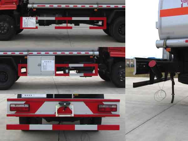 1、运输介质:汽油/密度700千克/立方米,类项号:3,罐体有效容积14立方米,罐体外形尺寸(长卓碜高)(mm):5800?250?520。该车适用于危险品运输,装配限速装置,限速80km/h。罐体上部选装无上走道;选装弧形挡泥板;文字喷涂位置可变化。工具箱可装在车架左侧或右侧且安装位置可前后变化。2、侧/后防护材料为Q235,侧防护螺栓连接,后防护焊接,截面尺寸120?0mm,下边缘离地高500mm。3、随底盘选装驾驶室;仅选用消声器前置、限速装置、前轮盘式制动及子午线轮胎的底盘;该车应装具有卫星定位功能的行驶记录仪;ABS型号/厂家:ABS-E 4S/4M, 3631010-C2000 /威伯科汽车控制系统(中国)有限公司,东科克诺尔商用车制动系统(十堰)有限公司。采用的发动机与油耗值(L/100Km)对应关系为: ISD180 50,ISD210 50,ISD245 50,ISD270 50,ISB190 50,ISB210 50, YC6JA180-50,YC6JA220-50, YC6A240-50,EQH180-52/27.0,27.0,27.0,27.0,27.2,27.2,27.1,27.1,27.1,27.2。